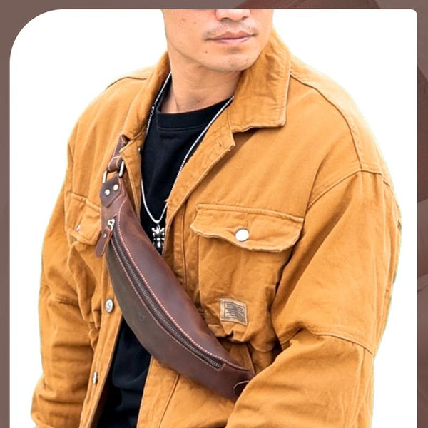 1. Retro crazy horse leather waist bag, classic and versatile