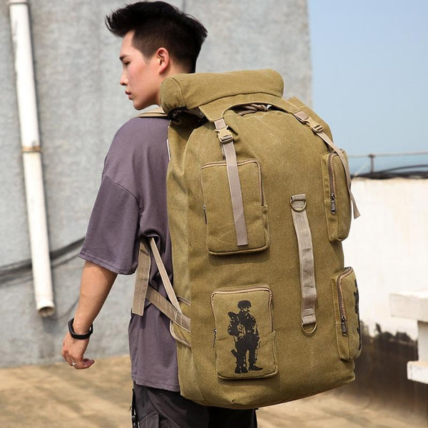 Canvas Shoulder Bag Large Capacity Outdoor Travel Bag Breathable Wearable Casual Backpack(Coffee)