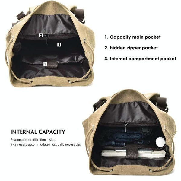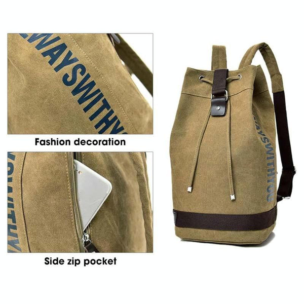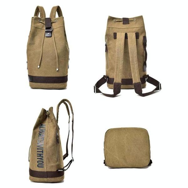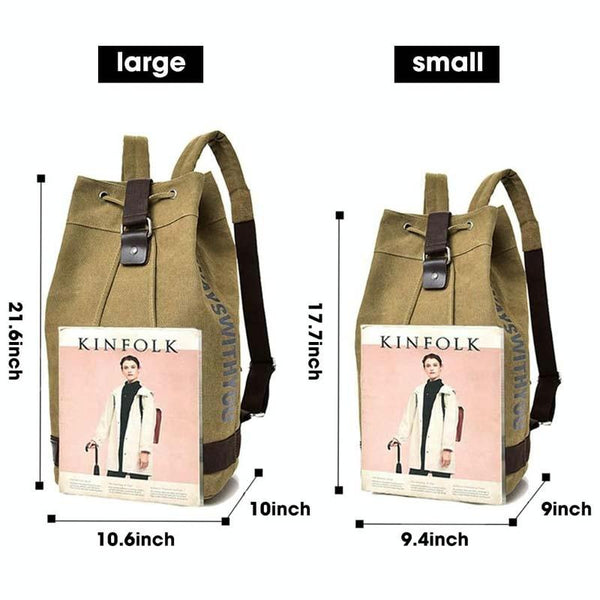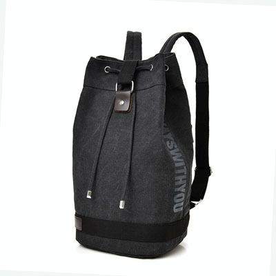 Casual Canvas Backpack Bucket Bag Computer Rucksack Travel Hiking Hand Bag, Size: Small Black