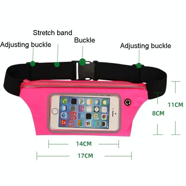 Contact Screen Sports Cell Phone Waist Pack Outdoor Leisure Gear Bag(Rose Red)