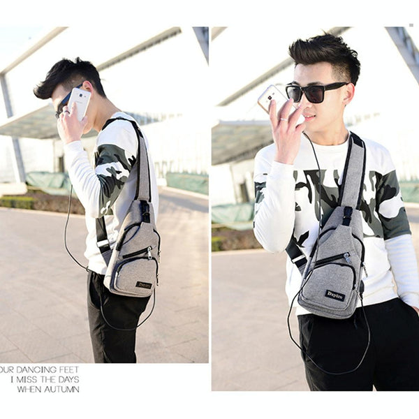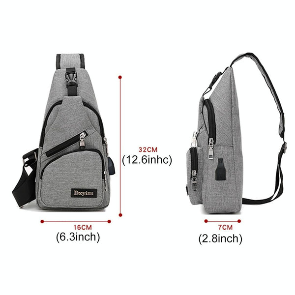 Dxyizu Multi-Function Portable Casual Canvas Chest Bag Outdoor Sports Shoulder Bag Waist Bag with External USB Charging Interface for Men / Women / Student, Random Logo Delivery(Grey)