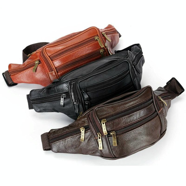 Fashion Men Leather Waist Bags Travel Necessity Organizer Mobile Phone Bag(Black)