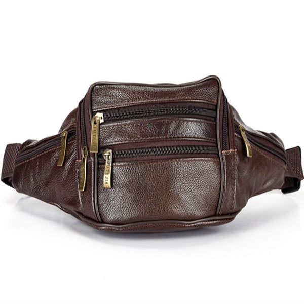 Fashion Men Leather Waist Bags Travel Necessity Organizer Mobile Phone Bag(Dark Brown)