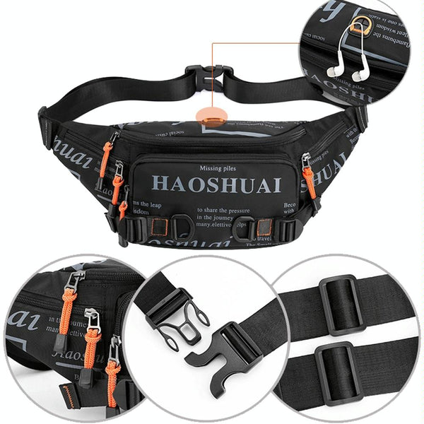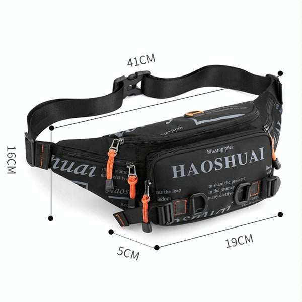 HAOSHUAI 5135 Outdoor Men Waist Bag Waterproof Nylon Cloth Men Bag(Dark Blue)