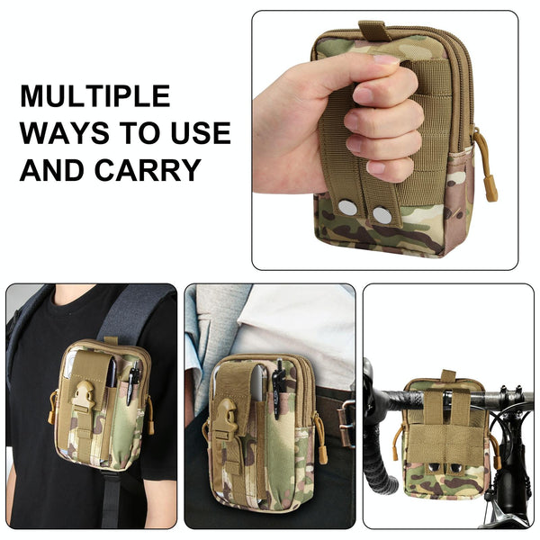 4. Practical Bag: It is small bag with large capacity! Designed to be used as a small pouch, utility belt pouch, molle pouch, tool pouch. Suitable for all your personal items such as portable GPS devices, chargers, keys, cash, ID cards, keychain, mobile phone (up to 7 inch screen size), mini flashlight and mini transceiver, small tools, or everything else readily needed.