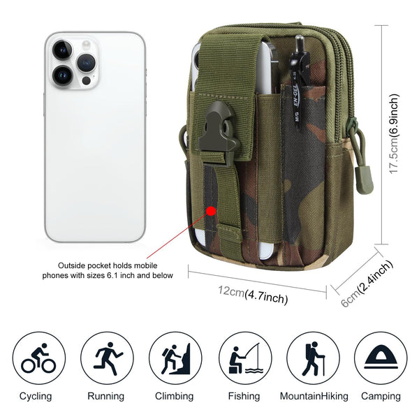 4. Practical Bag: It is small bag with large capacity! Designed to be used as a small pouch, utility belt pouch, molle pouch, tool pouch. Suitable for all your personal items such as portable GPS devices, chargers, keys, cash, ID cards, keychain, mobile phone (up to 7 inch screen size), mini flashlight and mini transceiver, small tools, or everything else readily needed.
