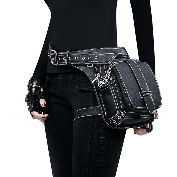 HG051 Steampunk Retro Waist Bag Outdoor One-Shoulder Messenger Bag(Black)