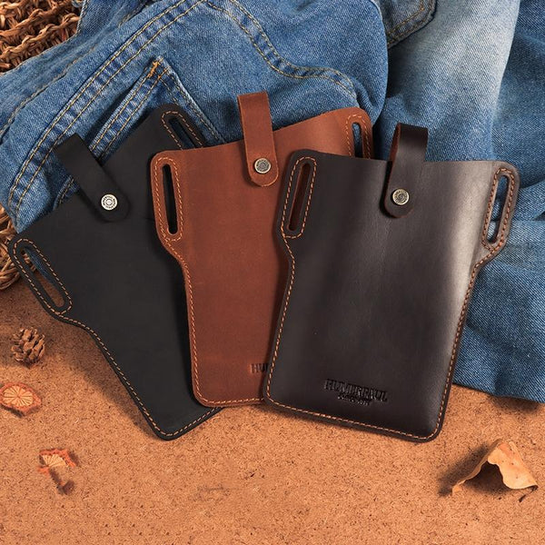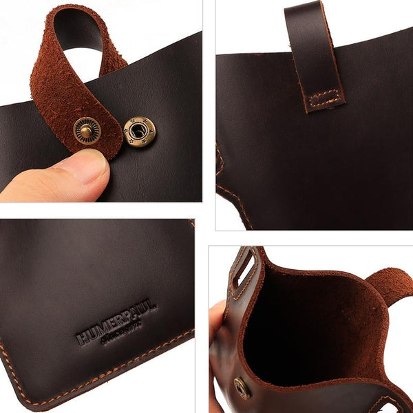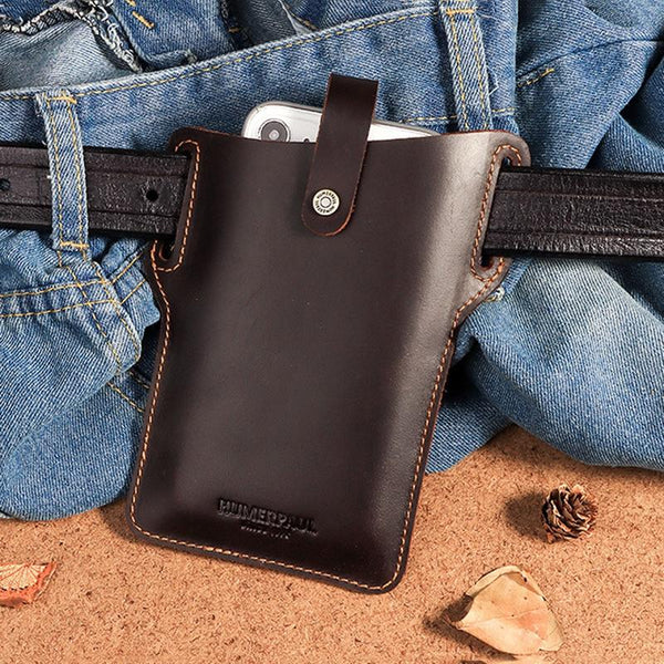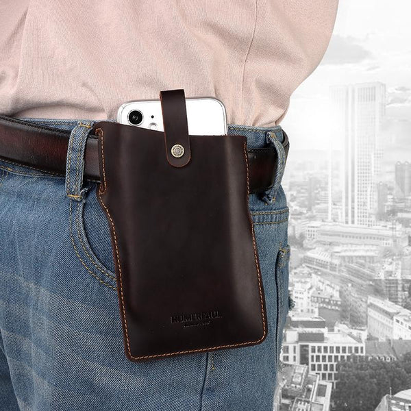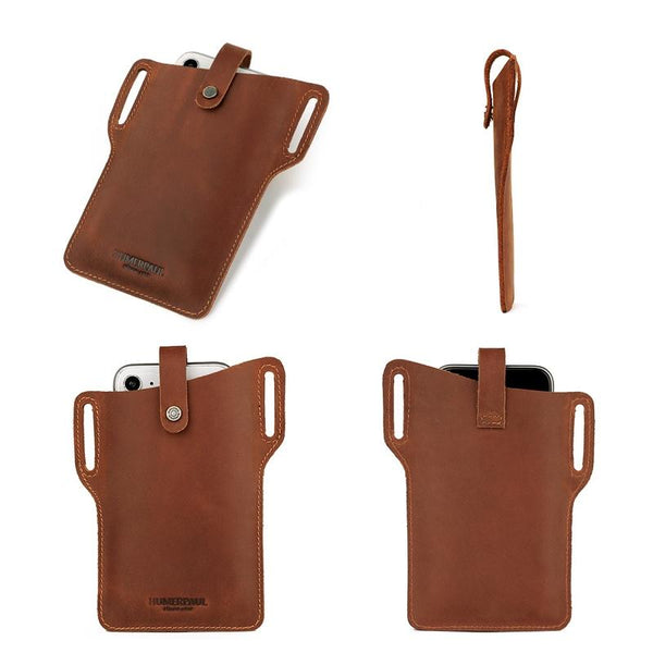 HUMERPAUL Men Leather Retro Belt Mobile Phone Bag(Khaki)