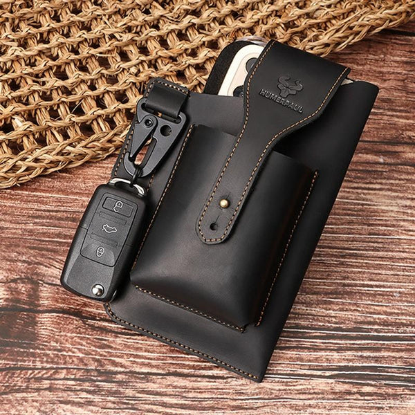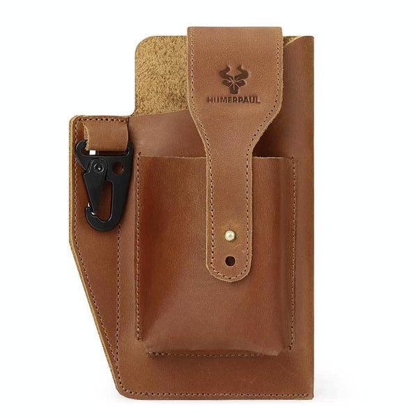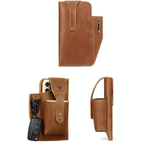 HUMERPAUL Retro Keychain Wears Belt Leather Mobile Phone Bag Men Waist Bag(Light Brown)