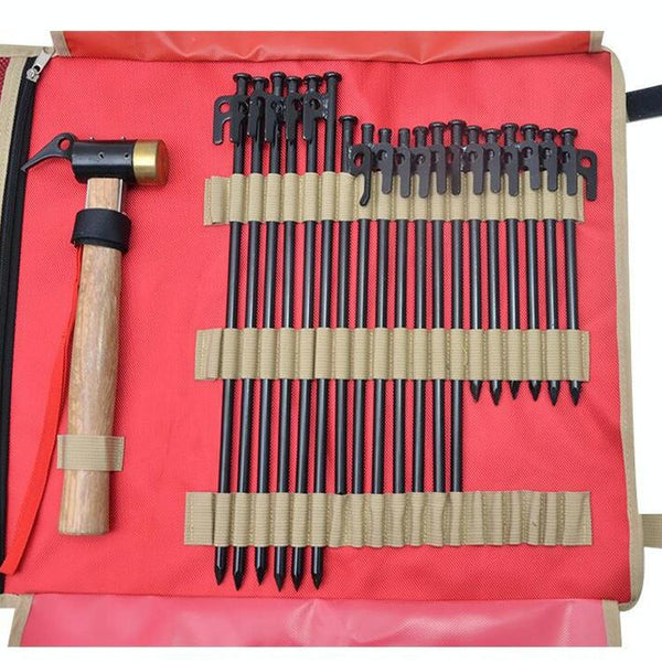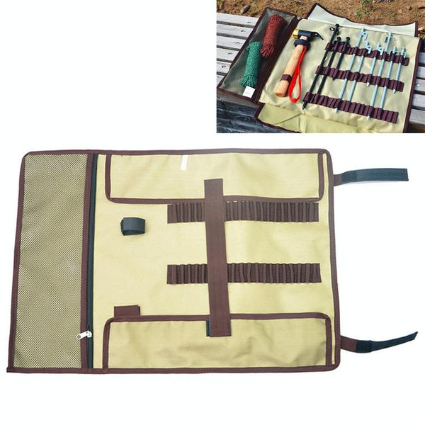 Large Outdoor Camping Ground Nail Storage Bag Tent Hammer Toolkit Bag(Khaki)
