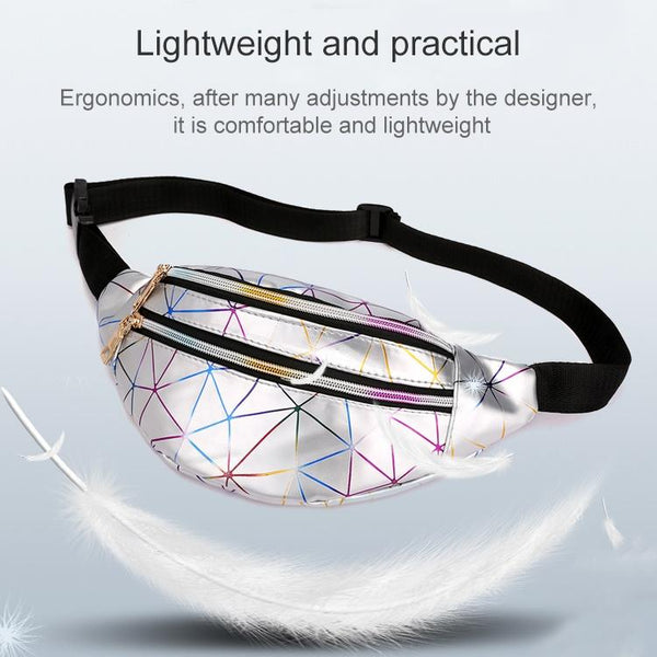 Laser Pattern PU Leather Waist Bags Women Fanny Pack Single Shoulder Bag(Black)