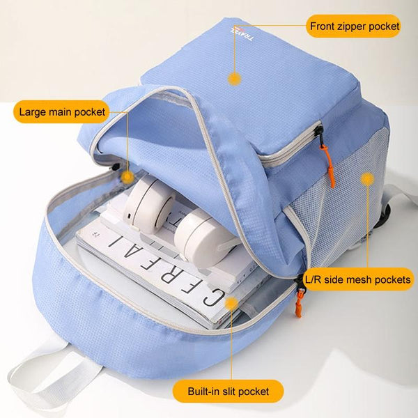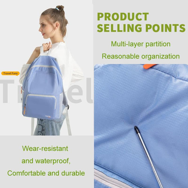 Lightweight Folding Backpack Student Schoolbag Large Capacity Outdoor Travel Camping Hiking Backpack(Black)