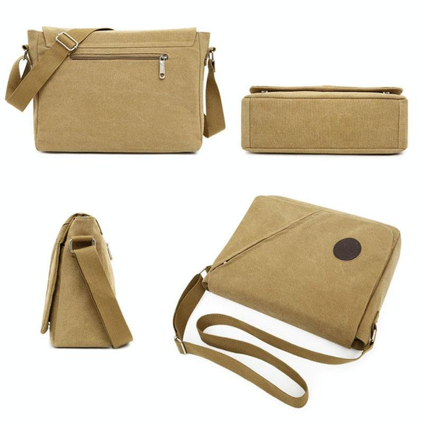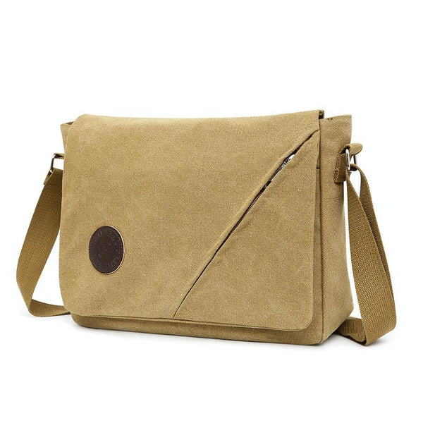 LIJIEBAO Canvas Shoulder Bag Men Casual Messenger Bag Simple Student Schoolbag(Khaki)