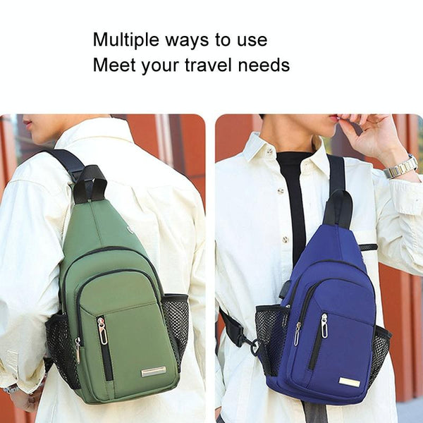 Men Chest Bag Oxford Cloth Casual Shoulder Bag Crossbody Small Backpack(Black)