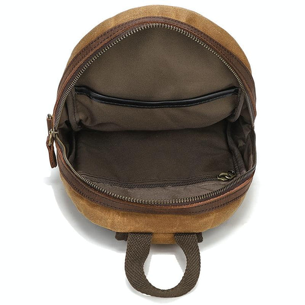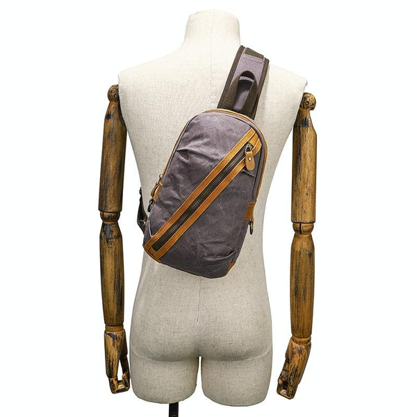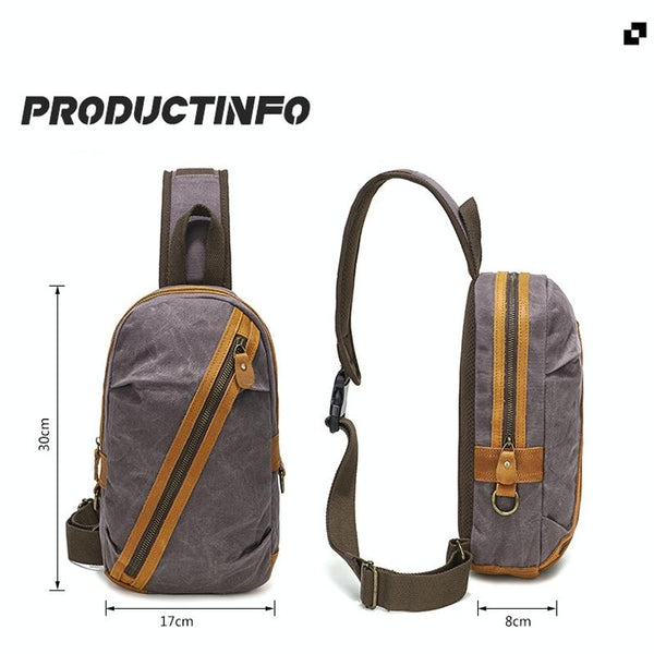 Men Chest Bag Waxed Canvas Crazy Horse Leather Shoulder Crossbody Bag Casual Waist Bag(Earth Yellow)