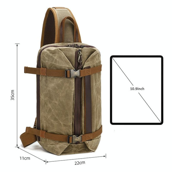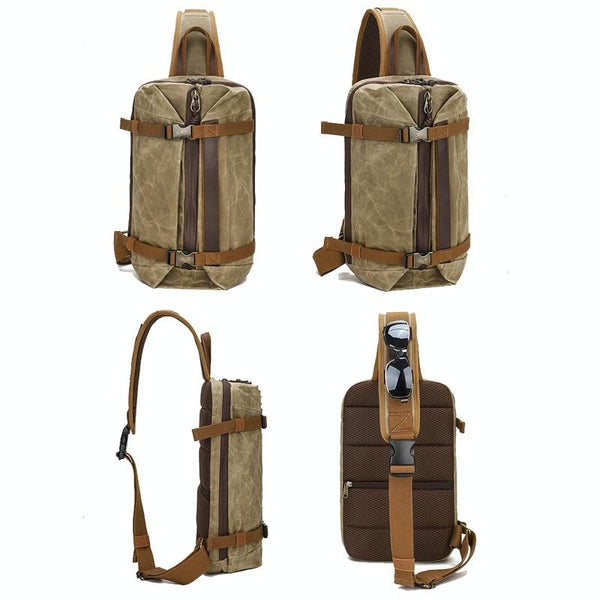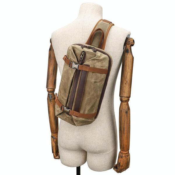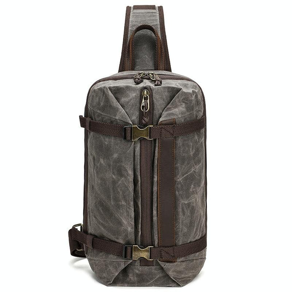 Men Waxed Canvas Chest Bag Retro Large Capacity Shoulder Crossbody Bag(1073 Gray)
