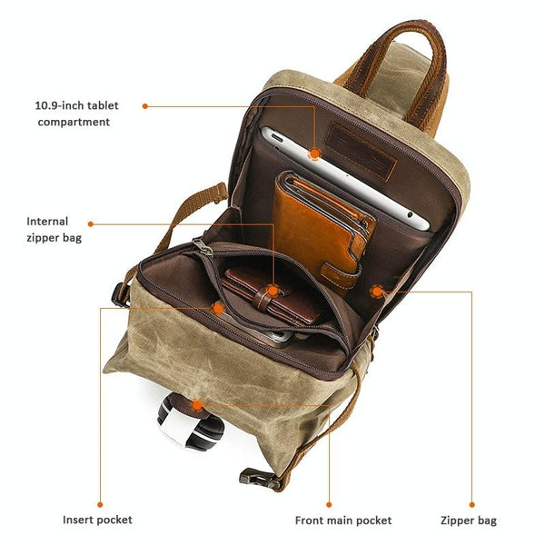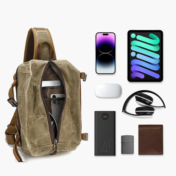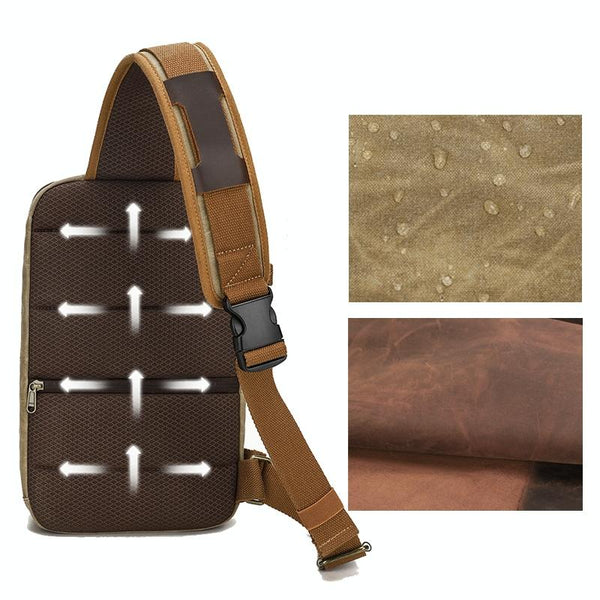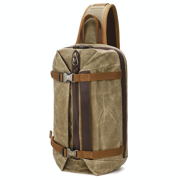 Men Waxed Canvas Chest Bag Retro Large Capacity Shoulder Crossbody Bag(1073 Khaki)