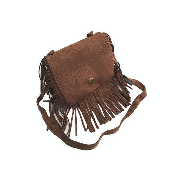 Mini Messenger Bag Cute Tassel Design Kids Coin Purses Children Handbags Shoulder Bags(Brown)