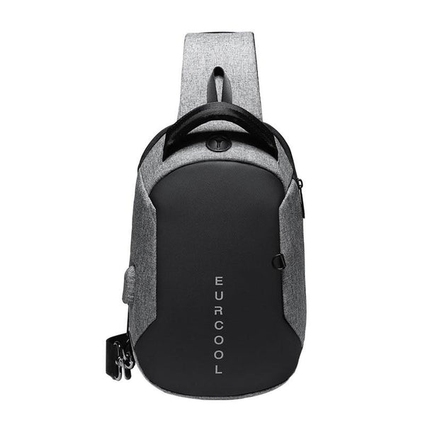 Multi Function Crossbody Bags Men Chest Bag Water Repellent Shoulder Bag with USB Charging Port, Size:S (Gray)