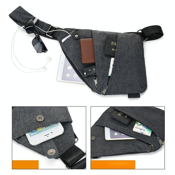 Multi-Function Portable Anti-theft Polyester Business Chest Bag Outdoor Sports Left Shoulder Bag for Men (Grey)