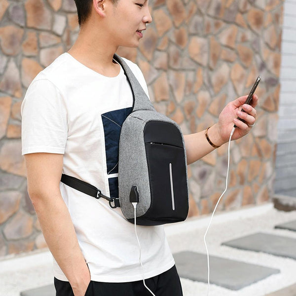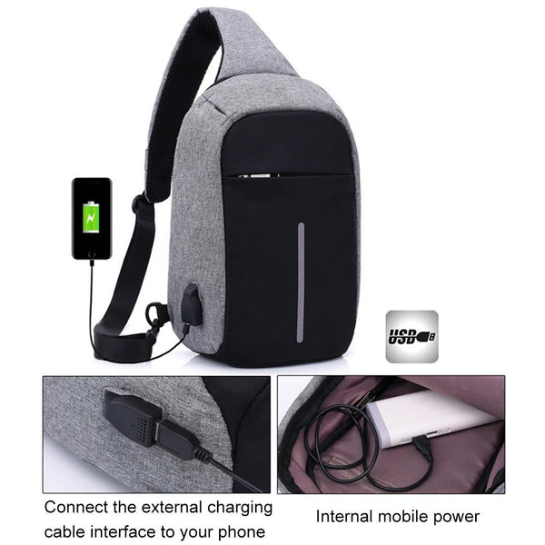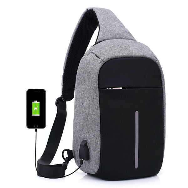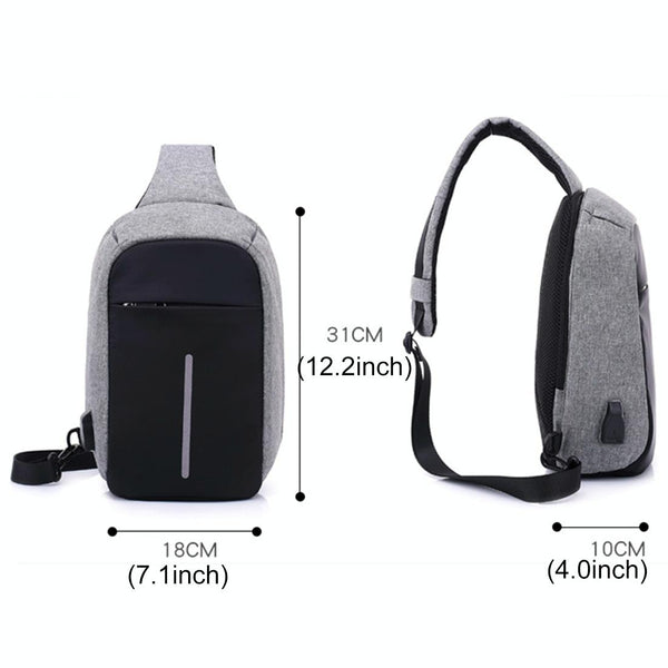 Multi-Function Portable Casual Chest Bag Outdoor Sports Anti-theft Shoulder Bag with External USB Charging Interface for Men / Women (Grey)