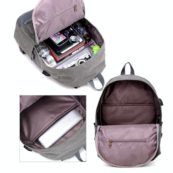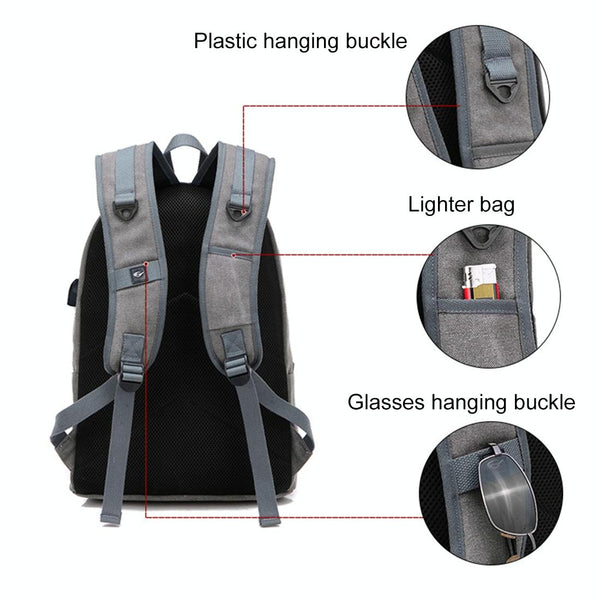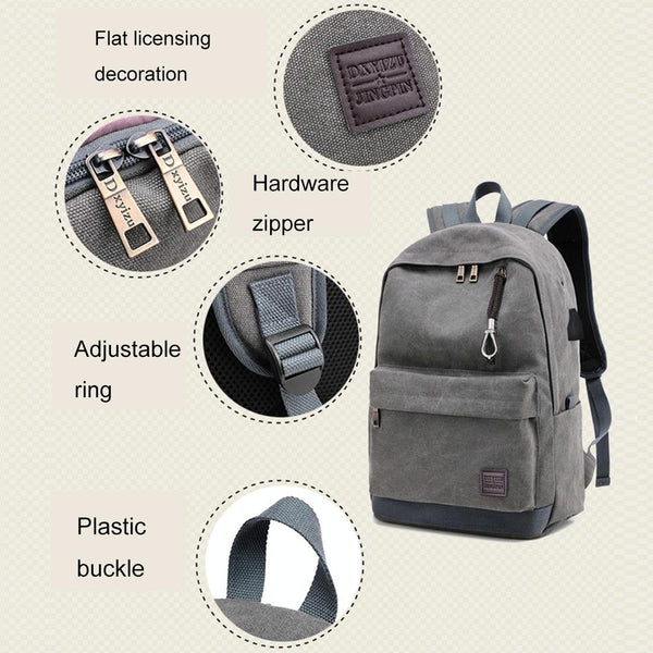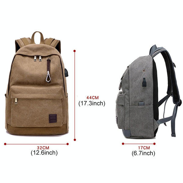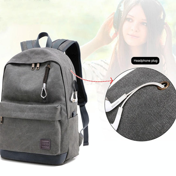 Multi-Function Travel Casual Canvas Backpack Students Bag with External USB Charging Interface & Headphone Jack (Coffee)