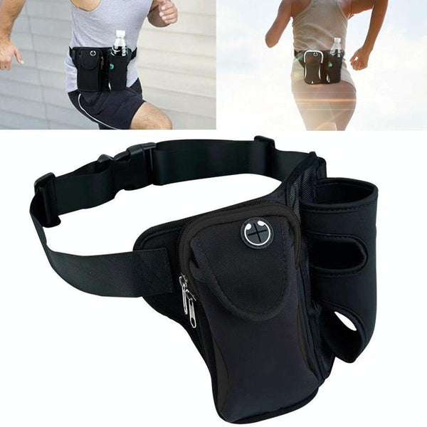 Multi-functional Unisex Running Outdoor Sports Water Bottle Waist Bag(Black)