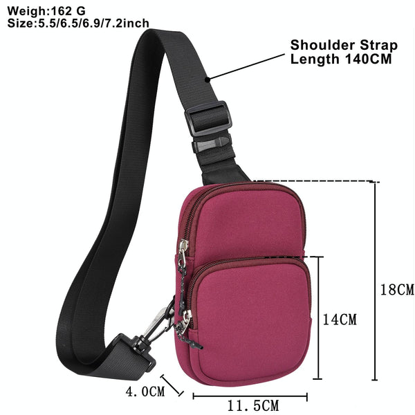 Nylon Fashion Chest Bag Mobile Phone Bag 5.5-7.2 inch Universal(Red)