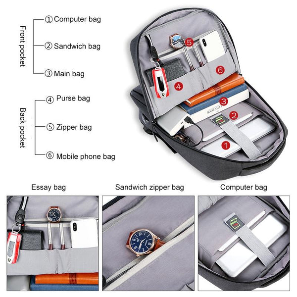 OUMANTU 9002A Business Laptop Bag Men Casual Backpack with External USB Port(Grey)