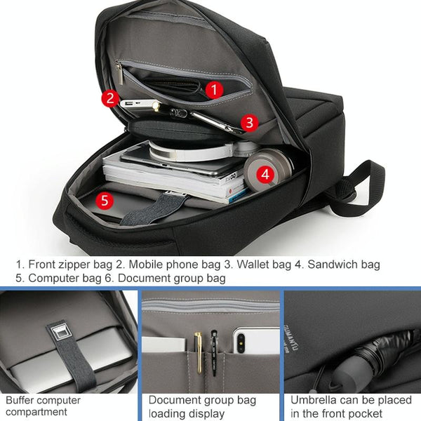 OUMANTU 9003 Business Laptop Bag Oxford Cloth Large Capacity Backpack with External USB Port(Light Grey)