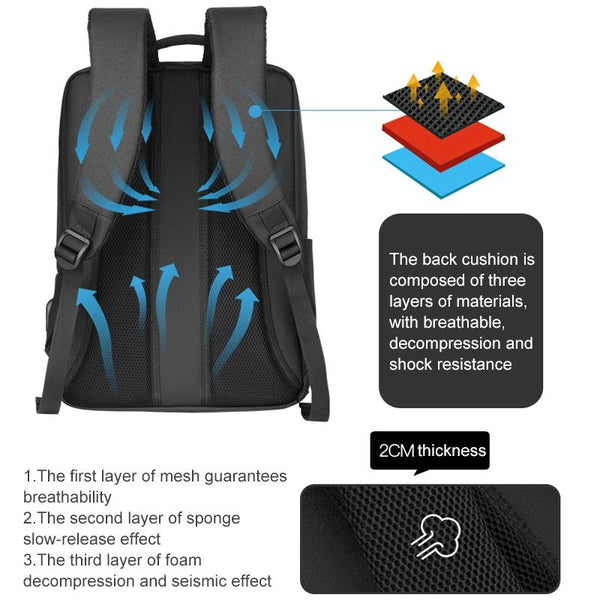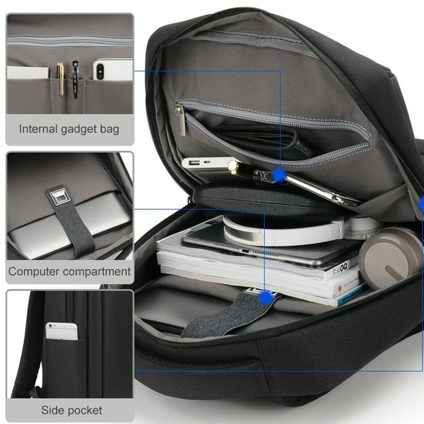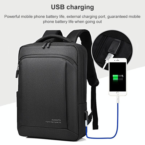 OUMANTU 9007 Business Laptop Backpack Oxford Cloth Large Capacity Schoolbag with External USB Port(Black)