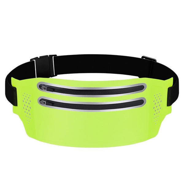 Outdoor Double Zipper Sports Waterproof Lycra Body Slim Waist Bag(Green)