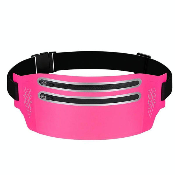Outdoor Double Zipper Sports Waterproof Lycra Body Slim Waist Bag(Rose Red)