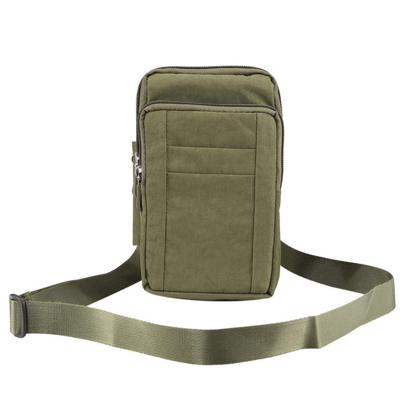 Outdoor Phone Carrying Case Pouch Nylon Crossbody Shoulder Cell Phone Holster Waist Belt Wallet Bag with Carabiner(Army Green)