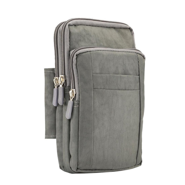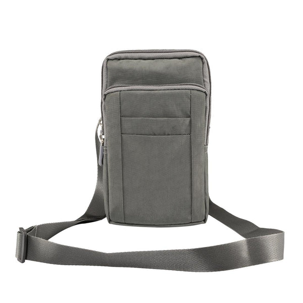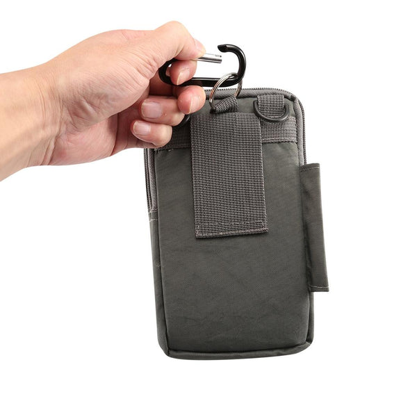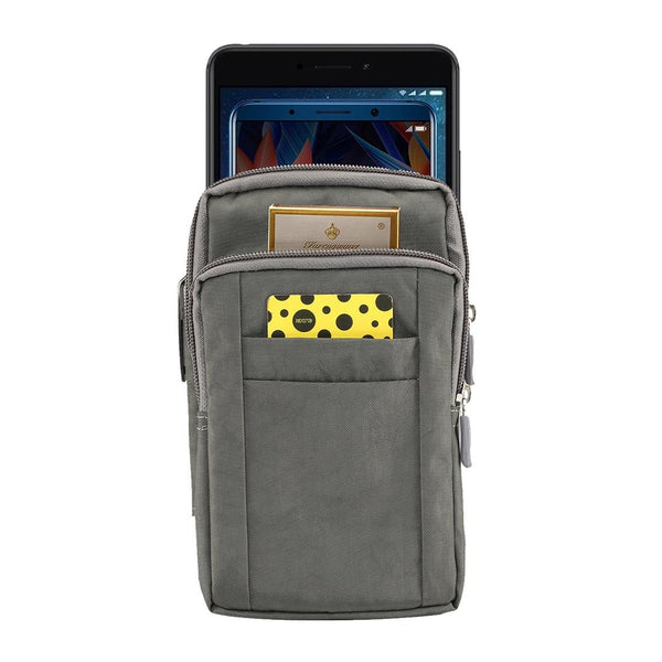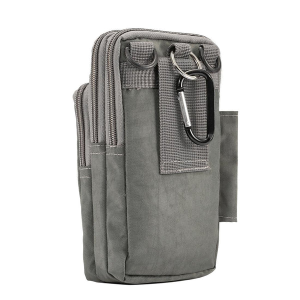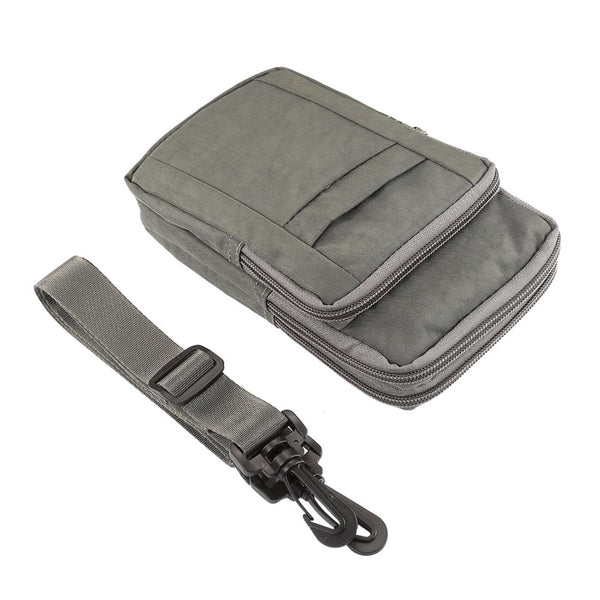 Outdoor Phone Carrying Case Pouch Nylon Crossbody Shoulder Cell Phone Holster Waist Belt Wallet Bag with Carabiner(Grey)