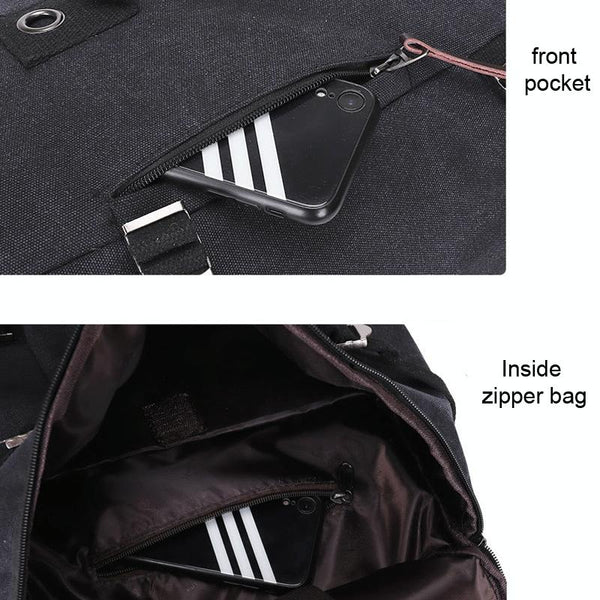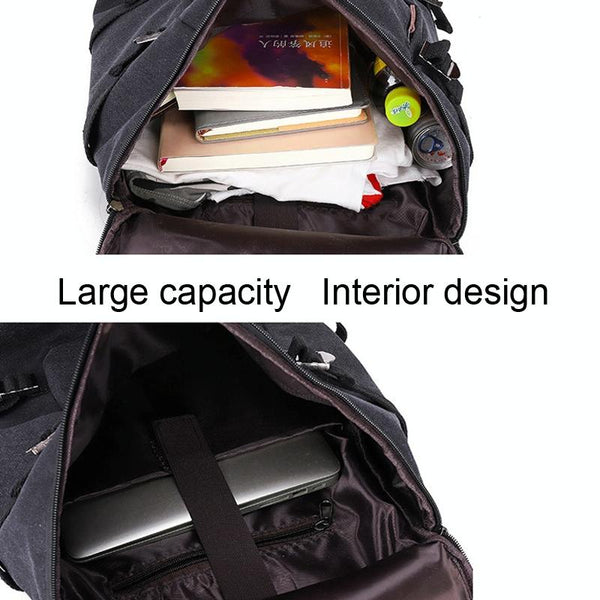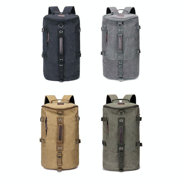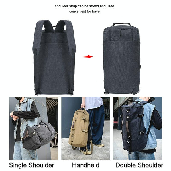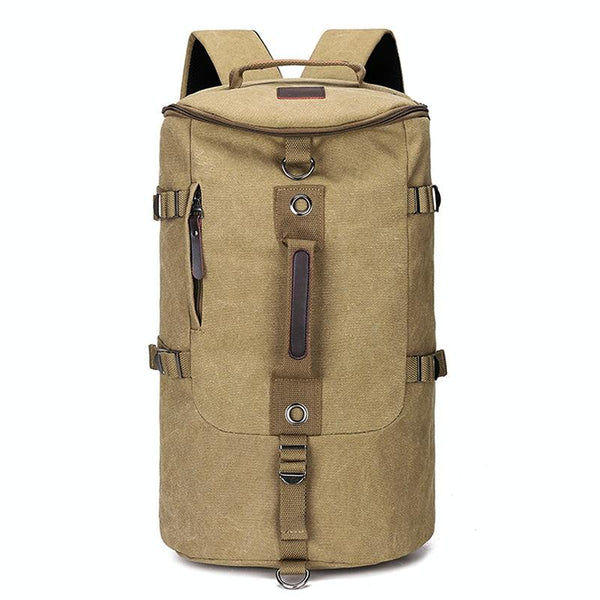 Outdoor Travel Man Canvas Double Shoulder Backpack Student Schoolbag(Khaki)