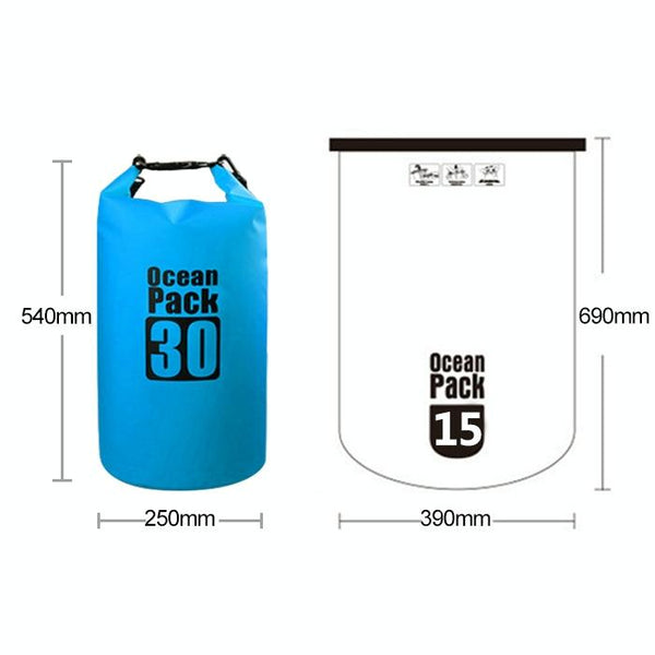 Outdoor Waterproof Double Shoulder Bag Dry Sack PVC Barrel Bag, Capacity: 30L (Sky Blue)