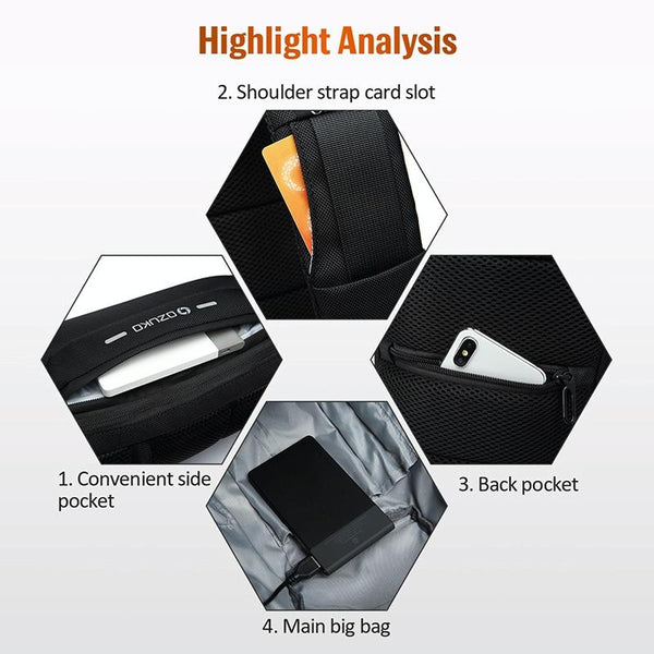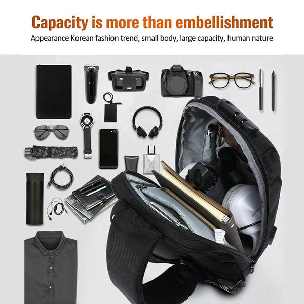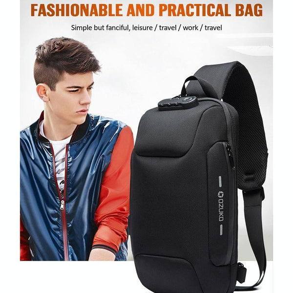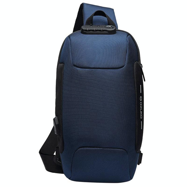 OZUKO 9223 Anti-theft Men Chest Bag Waterproof Crossbody Bag with External USB Charging Port, Style:Standard Size(Blue)
