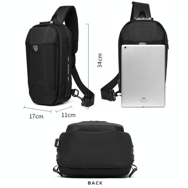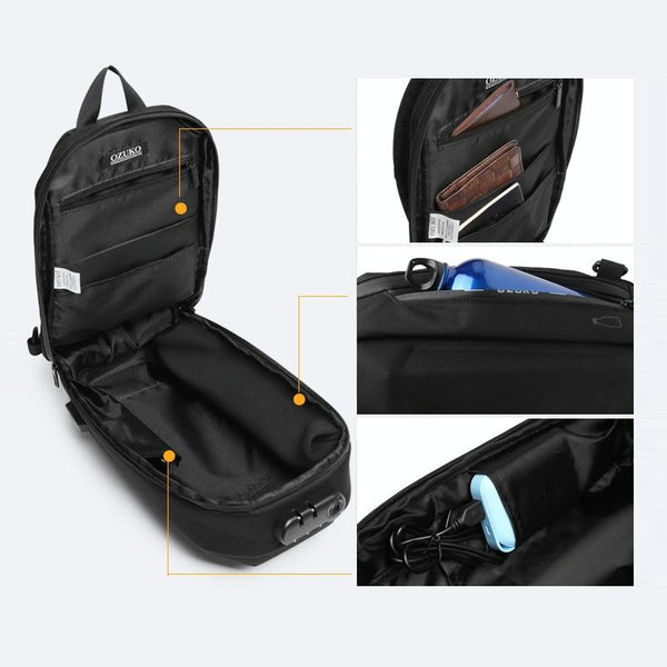 Ozuko 9321 Outdoor Anti-Theft Oxford Cloth Men Chest Bag Waterproof Messenger Bag with External USB Charging Port(Navy Blue)