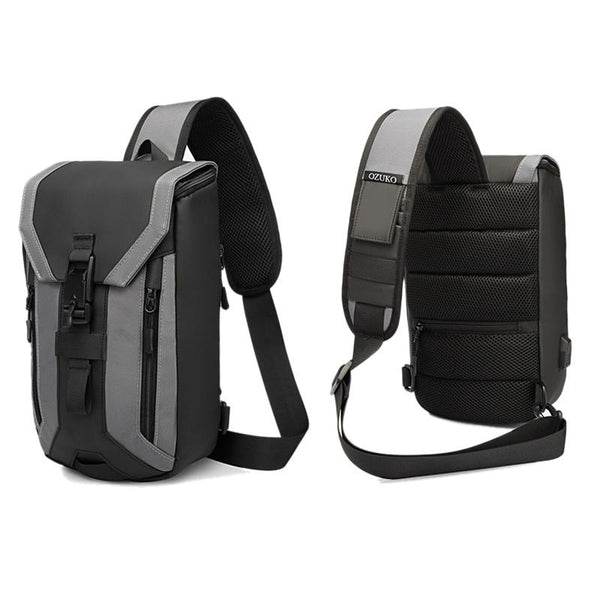 Ozuko 9334 Men Outdoor Multifunctional Waterproof Messenger Bag with External USB Charging Port(Dark Gray)