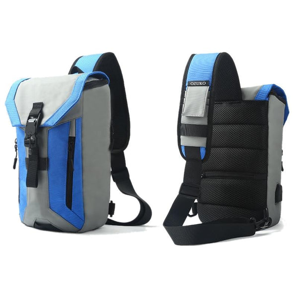 Ozuko 9334 Men Outdoor Multifunctional Waterproof Messenger Bag with External USB Charging Port(Sky Blue)