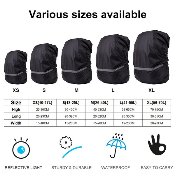 3. An adjustable buckle strap prevents the backpack lid from slipping, and an elastic rim can control the size of the rain cover, making it securely attached to your backpack.