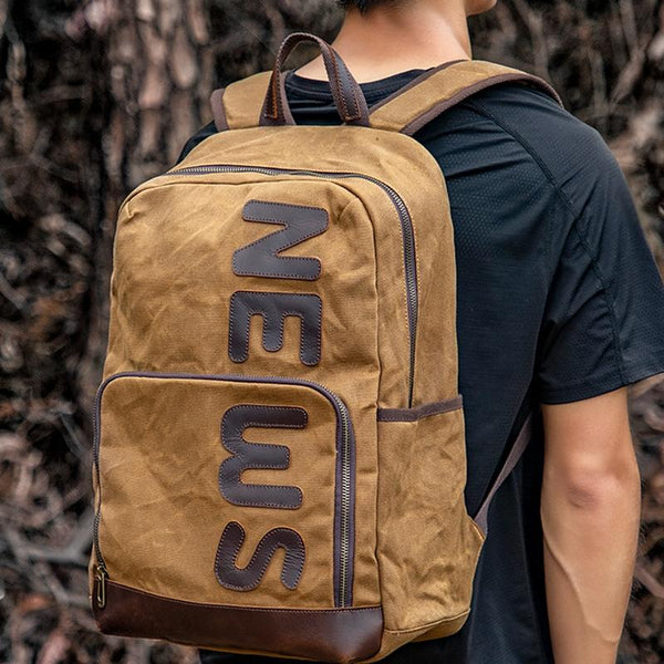 Retro Canvas Backpack Rucksack Large Capacity Laptop Bag(B20 Khaki)