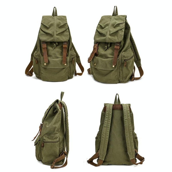 Retro Casual Canvas Travel Backpack 17 Inch Laptop Daypacks(Green)