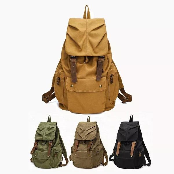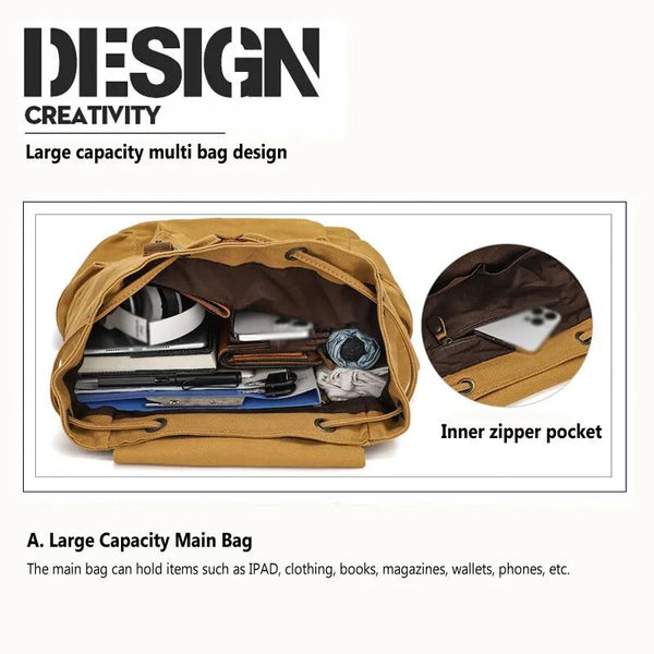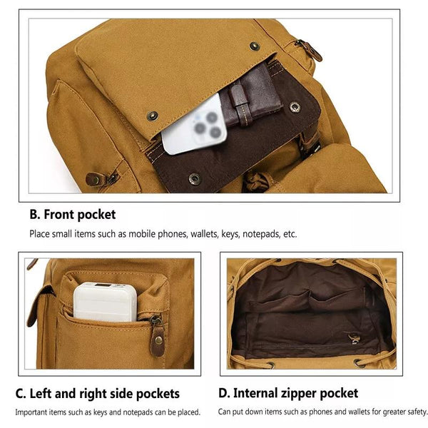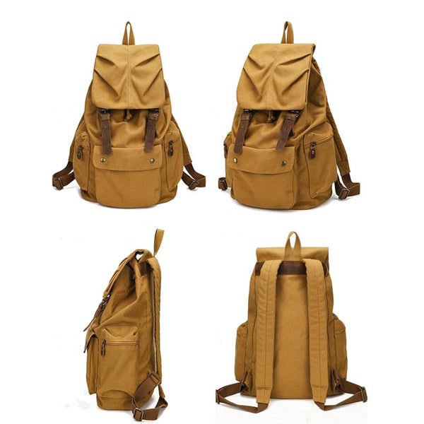 Retro Casual Canvas Travel Backpack 17 Inch Laptop Daypacks(Khaki)
