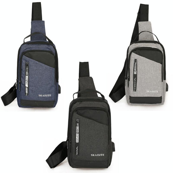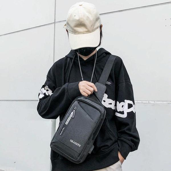 SKAISITE Men Outdoor Crossbody Bag Sports Leisure Large-Capacity Chest Bag(1-Black)