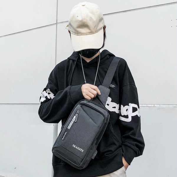 SKAISITE Men Outdoor Crossbody Bag Sports Leisure Large-Capacity Chest Bag(2-Gray)