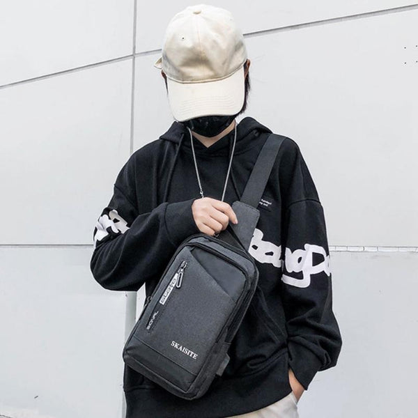 SKAISITE Men Outdoor Crossbody Bag Sports Leisure Large-Capacity Chest Bag(3-Black)