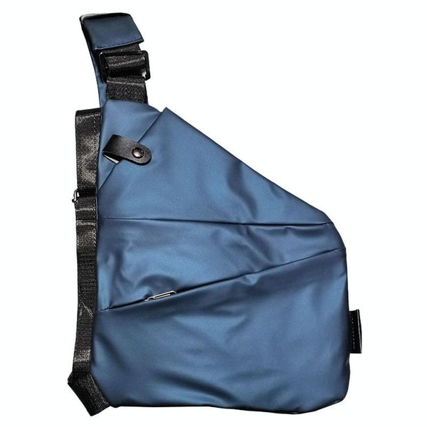 Sports Casual Men Crossbody Bag Large Capacity Multi-Pocket Single Shoulder Bag, Style: Left Shoulder Leather Film (Blue)
