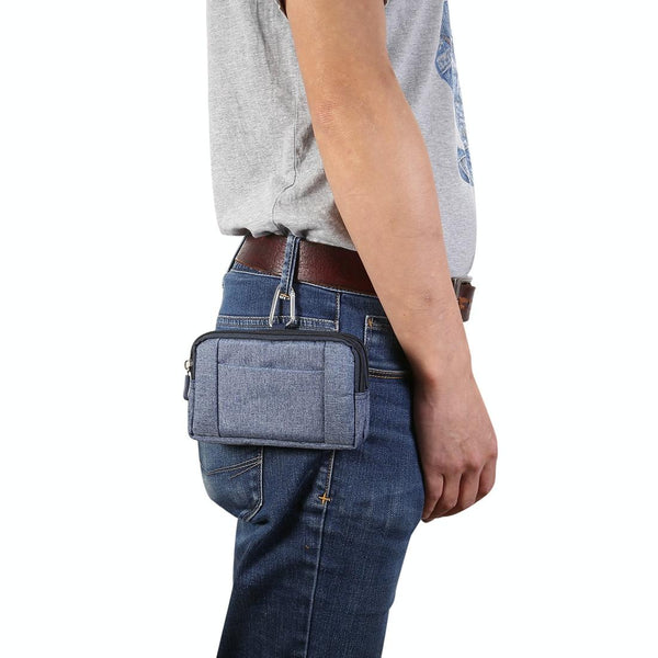 Sports Denim Universal Phone Bag Waist Bag for 5.2 inch or below Smartphones, Size: S (Blue)